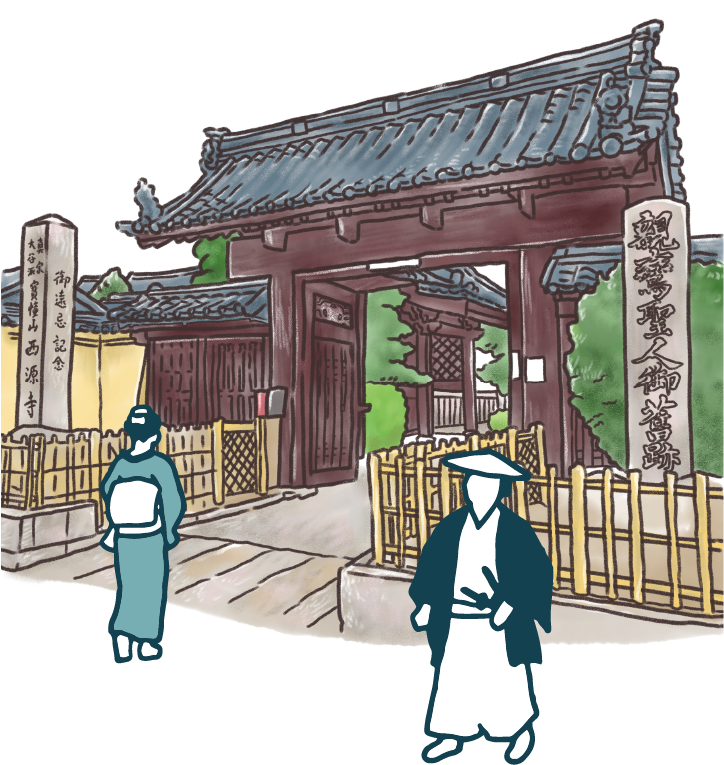 江崎善左衛門宗度は、小牧宿の整備に伴い、織田信長が造った小牧山南麓に広がる城下町を現在の小牧宿の位置に移転する際、宿場町の西側に有事の際に砦として軍事利用できるよう4つの寺(戒蔵院・西源寺・西林寺・玉林寺)を1カ所に集めました。戎蔵院はもともとは小牧山の南方にありました。