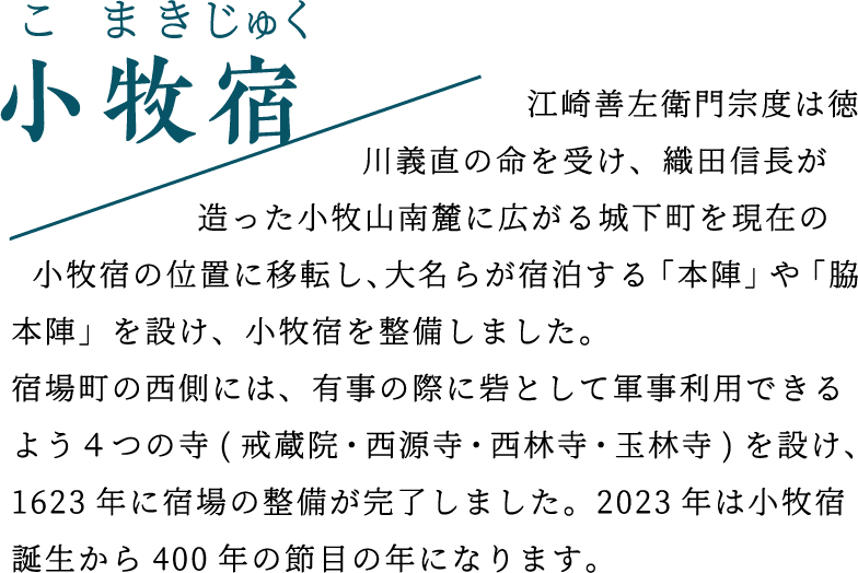 小牧宿の整備に伴い、宿場街の西側には有事の際に砦として軍事利用できるよう4つの寺(戒蔵院・西源寺・西林寺・玉林寺) が集められました。